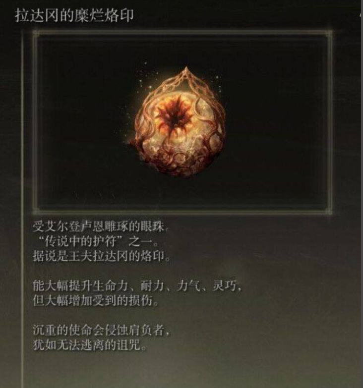 首頁 艾爾登法環 問答 艾爾登法環傳說護符有哪些? 2022-07-01 1、第一個:瑪莉卡的糜爛烙印。2、第二個:拉達岡的糜爛烙印。3、第三個:葛孚雷的肖像。4、第四個:古王護符。5、第五個:龍徽大盾護符。6、第六個:諾克史黛拉之月。7、第七個:黃金樹的恩惠。也是七個里最難的一個。
