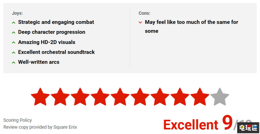 《歧路旅人》系列改進了經典的JRPG,具有令人驚嘆的HD-2D畫面,Break&Boost戰斗機制就像《最終幻想》的ATB系統從初代演變出來一樣。然而長時間的打磨,《歧路旅人》作為王道JRPG也在延續一些經典遊戲的固有問題。雖然《歧路旅人2》在前作基礎上的有限改進令人沮喪。但是本質上本作依舊觸及了很多遊戲無法觸及的痛點。對於不習慣如今《最終幻想》系列的發展方向,以及希望在千篇一律的3A遊戲中找一些在遊戲設計上真正有創造性的內容的玩家來說,《歧路旅人2》值得嘗試。