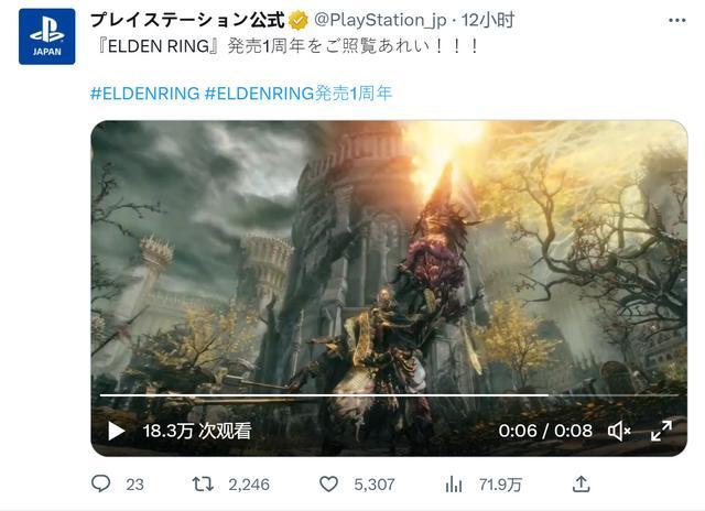 今天是萬代動作RPG遊戲《艾爾登法環》發售一周年,PlayStation日本官推發文慶祝。《艾爾登法環》近期銷量超過了2000萬,還獲得了第26屆DICE大獎「年度遊戲」。