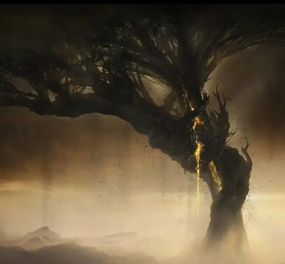 還可以理解成舊黃金樹裂開,從中間誕生出新的黃金樹。