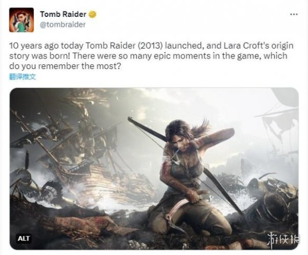 《古墓麗影》官方發文,慶祝重啟版(2013版)游戲發布十周年。