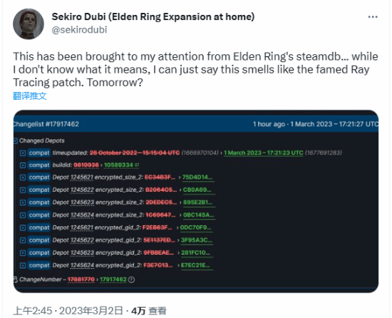 數據挖掘者SekiroDubi發現了SteamDB上《艾爾登法環》的最新動向,其認為遊戲的光追模式即將上線。