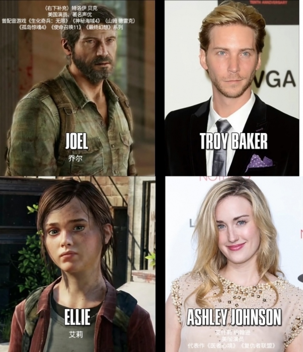 《最後生還者》遊戲中喬爾和艾莉的聲優分別是Troy Baker、Ashley Johnson,他們也會在真人劇中客串出演。其中Troy已經在第八集出現,他扮演的是反派角色詹姆斯,最終被艾莉一刀捅死(尼爾的惡趣味???)。根據第九集預告,Ashley也會在結局中出現。