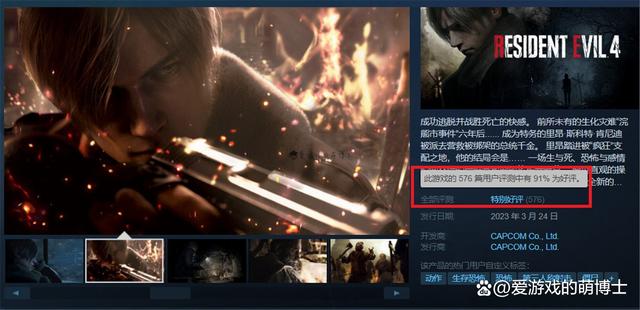 按照慣例,博士每週都會和大家分享Steam遊戲暢銷榜,而近一個月來有一款卡普空製作的產品憑藉著預購量一直在榜單上名列前茅,那就是冷飯之王《生化危機4》的重製版。如今《生化危機4:重製版》已經正式推出了,目前在Steam上獲得了“特別好評(91%為好評)”的玩家評價,再加上之前媒體們也給出了高分,基本不可能翻車了。
