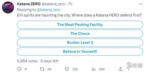 除此之外,官方發起了一項投票向玩家們詢問武士英雄首先會在哪裡保護自己免受一些惡靈的傷害,選項中有肉類加工廠、馬戲團和地堡第二層,很可能是在暗示這幾個地點將會在資料片中出現。