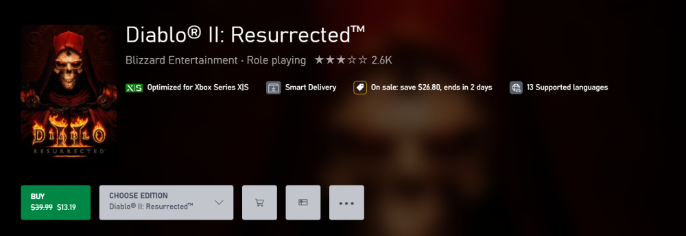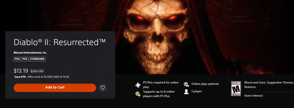 距離《暗黑破壞神4》的發售只有2個月時間,《暗黑破壞神2重製版》再次開啟了打折。以美服為例,立減67%之後的價格低至13.19美元,摺合人民幣不到100元,不過僅限主機版的PlayStation和Xbox平臺,PC、Switch版不包含在內,活動截止到4月12日。