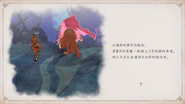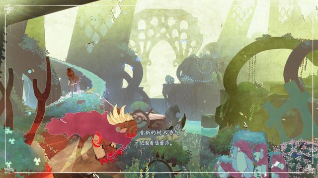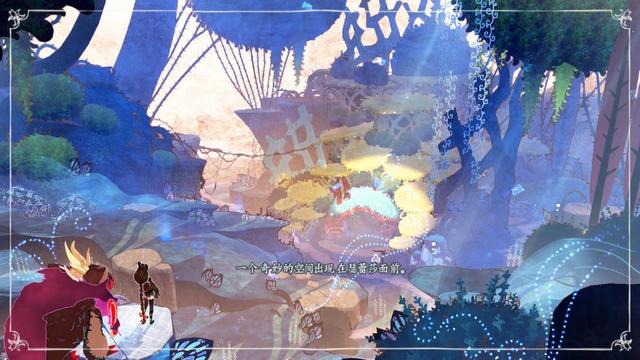 《蓓優妮塔起源》採用了童話繪本的表現形式,遊戲不僅以旁白翻頁講故事的形式推進劇情,也搭建出了一個華麗而魔幻的“阿瓦隆森林”。森林中的每個場景都如繪本中的插畫那樣精緻、獨特、色彩濃郁。