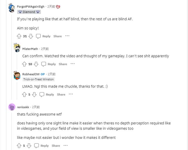 網友們在回覆中紛紛表達了對Marshal Mommy的肯定,還開玩笑道:“如果你是用一隻眼在玩遊戲,那我們一定都是瞎子”。