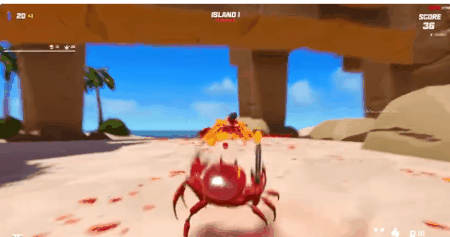 在這款遊戲中,玩家將扮演一隻拿槍的螃蟹去擊敗眼前的所有敵人(海鮮)。不斷探索海島,並獲取更多的武器道具。遊戲的作業系統並不難,只有跳躍、射擊、奔跑這三項,但在無數敵人的包圍中閃轉騰挪、過關斬將,這種娛樂性和爽快感卻令人非常受用。