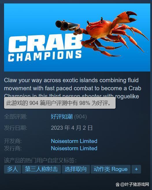 小型獨立遊戲,對肉鴿元素總有別樣的偏愛。即便是簡單的玩法流程,在新增了肉鴿元素之後,也能大大增加耐玩性。昨日在Steam平臺,就上架了款名為《Crab Champions》(螃蟹冠軍)的射爆遊戲。