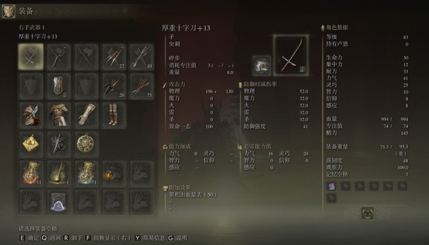 首頁 艾爾登法環 問答 艾爾登法環十字刀怎麼樣? 2022-07-22 非常好,傷害很高,有出血並且打血厚點的怪很舒服,十字刀長矛獲取方式是去蓋爾坑道有個房間里刷一個大章魚和一群小章魚,屬於是個人推薦的長矛。