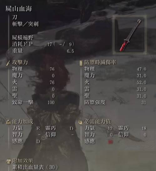 1.屍山血海。優點:戰技有一定攻擊距離,連段速度適中,出血效率適中,整體傷害較高。缺點:毫無韌性、霸體,被擊就斷,戰技中途斷掉很難受;平砍乏力。適用場合:女武神這類韌性低、容易出血的BOSS,不適合推圖。