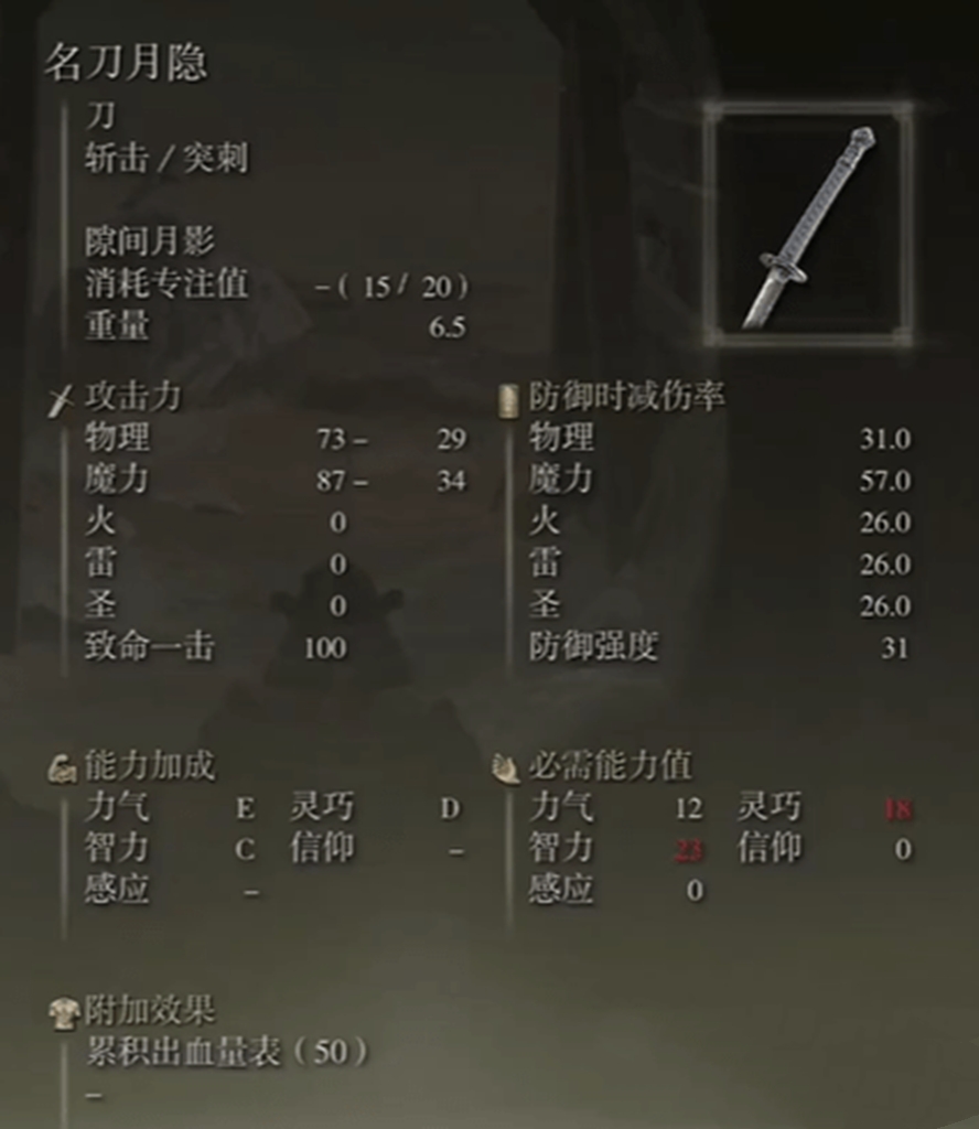 首頁 艾爾登法環 問答 艾爾登法環名刀月隱傷害和什麼有關? 2022-08-04 刀月隱傷害和屬性有關。想要使用名刀月隱的戰技需要滿足它的屬性要求,名刀月隱需要力氣12、靈巧18、智力23,滿足了屬性之後,打出的傷害才會高。