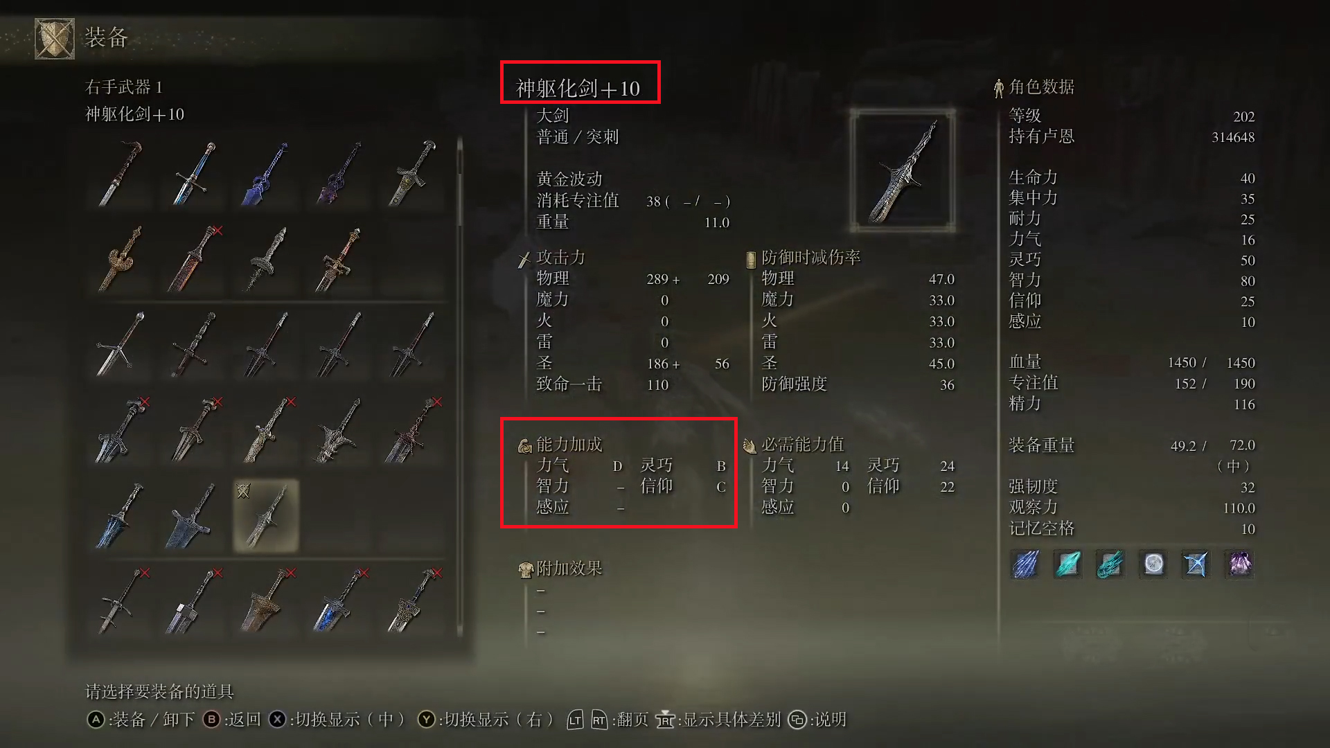 首頁 艾爾登法環 問答 老頭環神軀化劍怎麼加點? 2022-08-07 1、因為神軀化劍的能力加成方面主要是力氣、靈巧和信仰屬性,所以角色的屬性加點可以集中在力氣、靈巧和信仰屬性。2、神軀化劍專用戰技:黃金波動,能夠將劍身寄宿舊時的黃金,接著釋放的戰技黃金波動會朝前方扇狀大幅擴收,橫掃所有敵人。