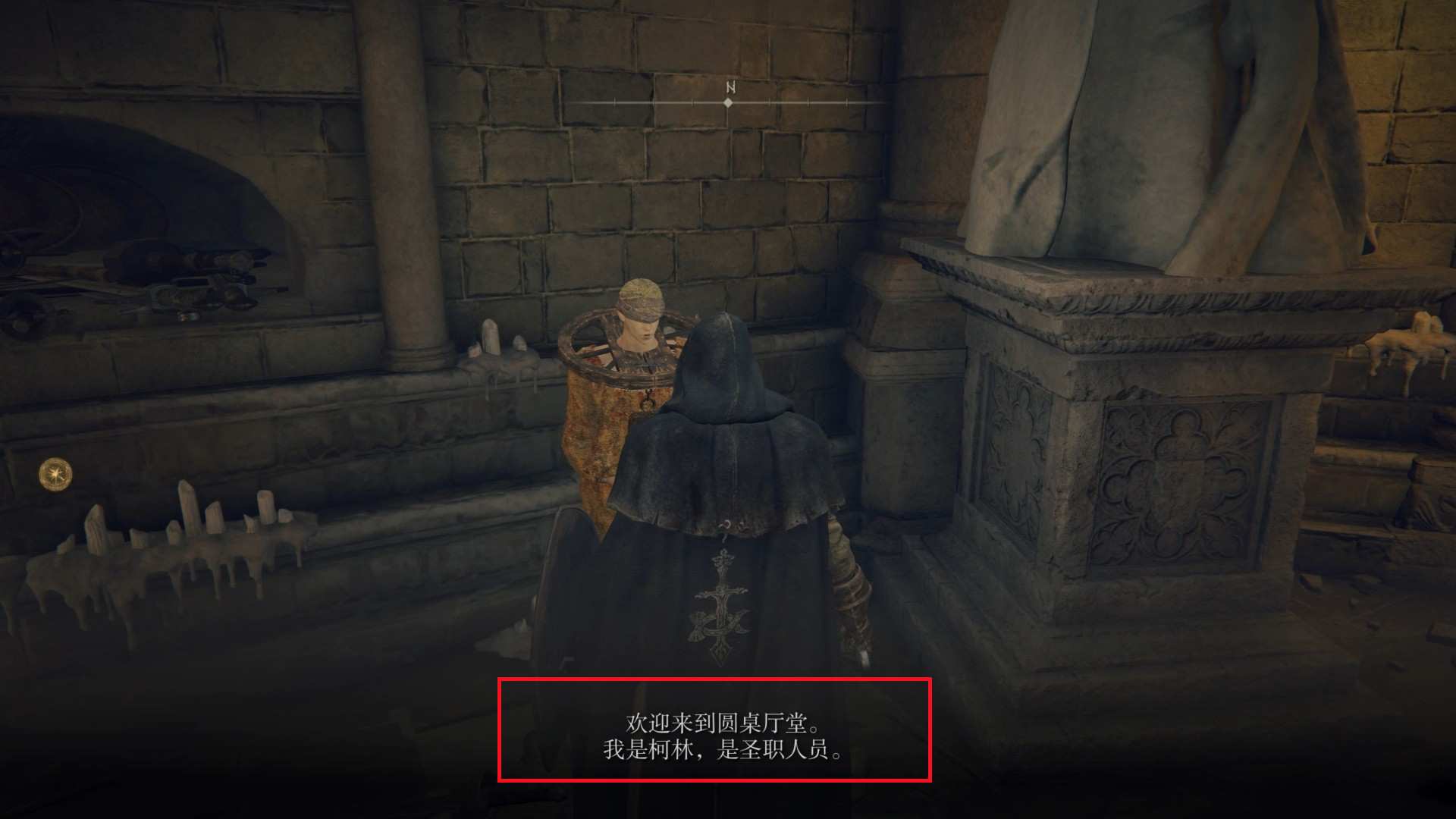 2.與柯林交談可以得知他正在考慮離開圓桌廳堂,目的是為了尋找一個叫做【金面具】的人學習更多的黃金律法。