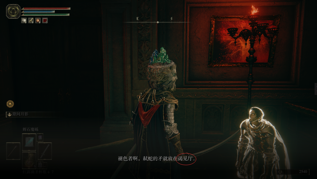 1、在火山官邸任務里,有一個NPC會說,褪色者弒蛇的矛就放在謁見廳。其實這個謁見廳就是BOSS「褻瀆君王」拉卡德的房間。