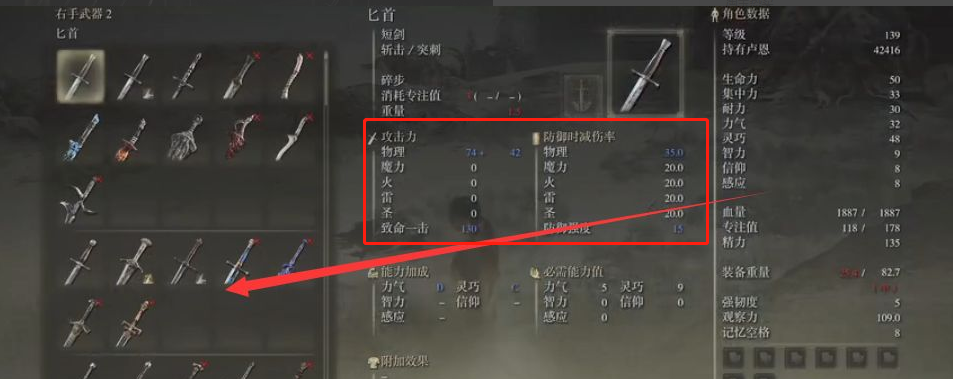 首頁 艾爾登法環 問答 艾爾登法環防具屬性怎麼看? 2022-08-08 可以在武器欄查看裝備屬性,進入艾爾登法環遊戲界面,點擊選擇左側的裝備,進入裝備界面,點擊選擇武器欄,再點擊選擇環赫芬尖塔劍,在赫芬尖塔劍裝備界面,即可查看防具屬性。