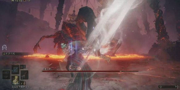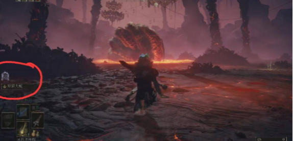 3、然後沖到大蛇面前,站在它腳下的岩漿里打。