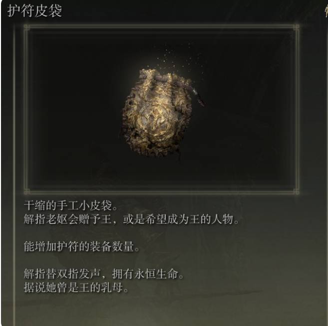 首頁 艾爾登法環 問答 艾爾登法環飾品欄怎麼加? 2022-08-09 打完噩兆給一個,打完女王拿到第二個大盧恩去圓桌找二指旁邊的老婆婆會再給你一個,這樣就能裝三個護符了,老頭環里玩家初始時候可以佩戴2個護符,在置物包-貴重物品選項里玩家可以找到名為護符皮袋的道具,這樣總共就5個了。
