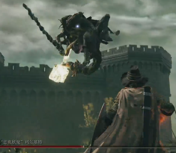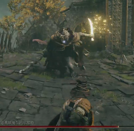 2、第一波走上去,惡鬼瑪爾基特會在左手變出光刀並向我們扔來,最多三發,左右閃避就可以躲開它的遠程攻擊。