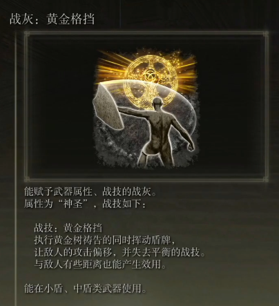 首頁 艾爾登法環 問答 老頭環黃金格擋是什麼意思? 2022-08-10 黃金格擋是艾爾登法環中的一個戰灰戰技,在執行黃金樹禱告的同時揮動盾牌,就能讓敵人的攻擊偏移,並失去平衡的戰技。與敵人有些距離也能產生效用。