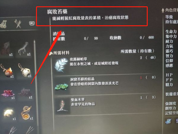 在艾爾登法環遊戲中猩紅腐敗解葯是治療猩紅的。我們可以找到沼澤商人,沼澤商人那裡可以買到,但是要兩千五一個,而且是只賣三個的。
