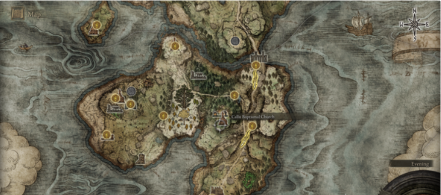 首頁 艾爾登法環 問答 艾爾登法環卡爾洗禮教堂在哪? 2022-08-10 打開地圖就可以找到卡爾洗禮教堂的位置,如下圖所示,卡爾洗禮教堂里賣弄能夠獲得聖杯滴露,聖杯滴露是一種加強道具素材,用於提升恢復葯和回藍葯的恢復量,通常可以在地圖各處教堂的雕像中獲得。