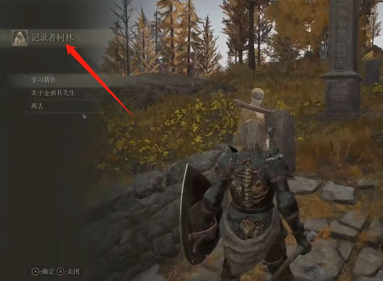 首先玩家進入游戲後,打開地圖,前往圖示標記點,接著找到NPC,進行對話,按照提示最後就能找到記錄者柯林,如下圖所示: