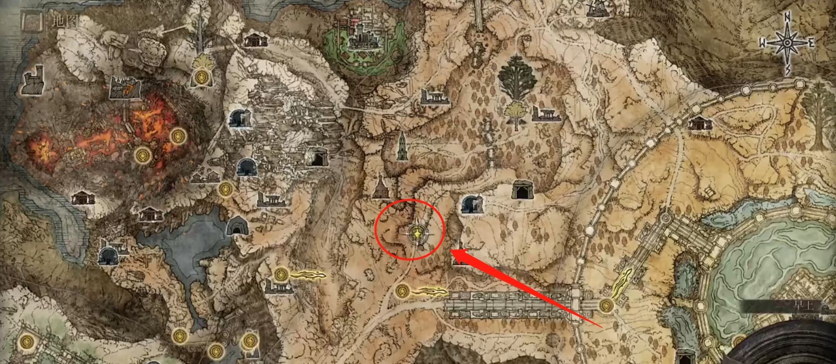 1、艾爾登法環龍裝大樹守衛在地圖的右上角位置,它沒有地點名稱,具體位置如下圖所示。2、點擊進入後來到王城外圍,你會可以找到艾爾登法環龍裝大樹守衛,它的傷害值很高,要保證自己的血量。3、打敗艾爾登法環龍裝大樹守衛後,你就會獲得大龍爪。