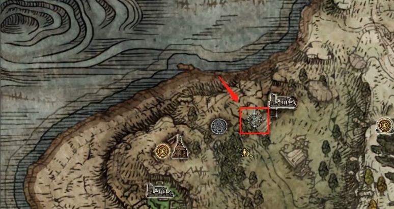 1、首先我們傳送到瑪莉卡第四教堂旁邊的那個地方,如下圖所示的標記處,