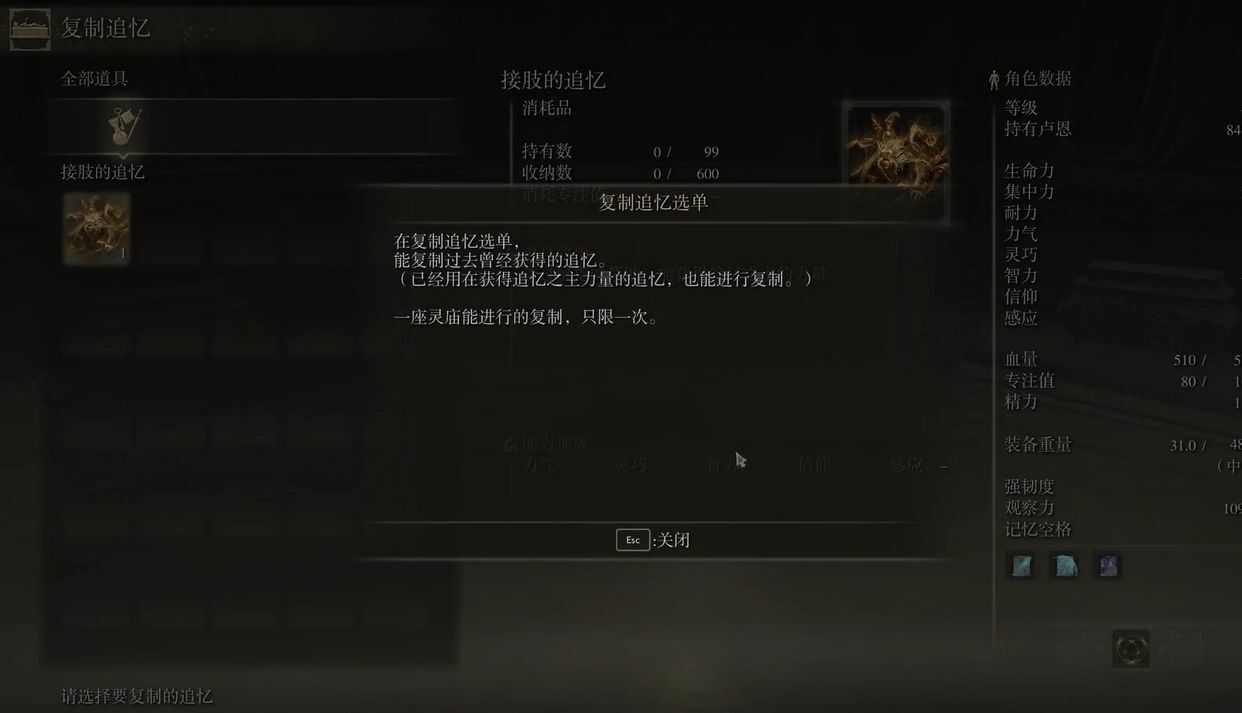 首頁 艾爾登法環 問答 艾爾登法環復制記憶有什麼用? 2022-08-12 復制記憶這個道具是boss靈魂,可以去圓桌地圖的老奶奶處兌換BOSS的相關武器,例如接肢葛瑞克的追憶就可以換他的那把斧頭和他左手的龍頭拳套。