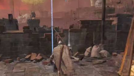 5、在牆邊的屍體上即可搜刮出焰型大劍。