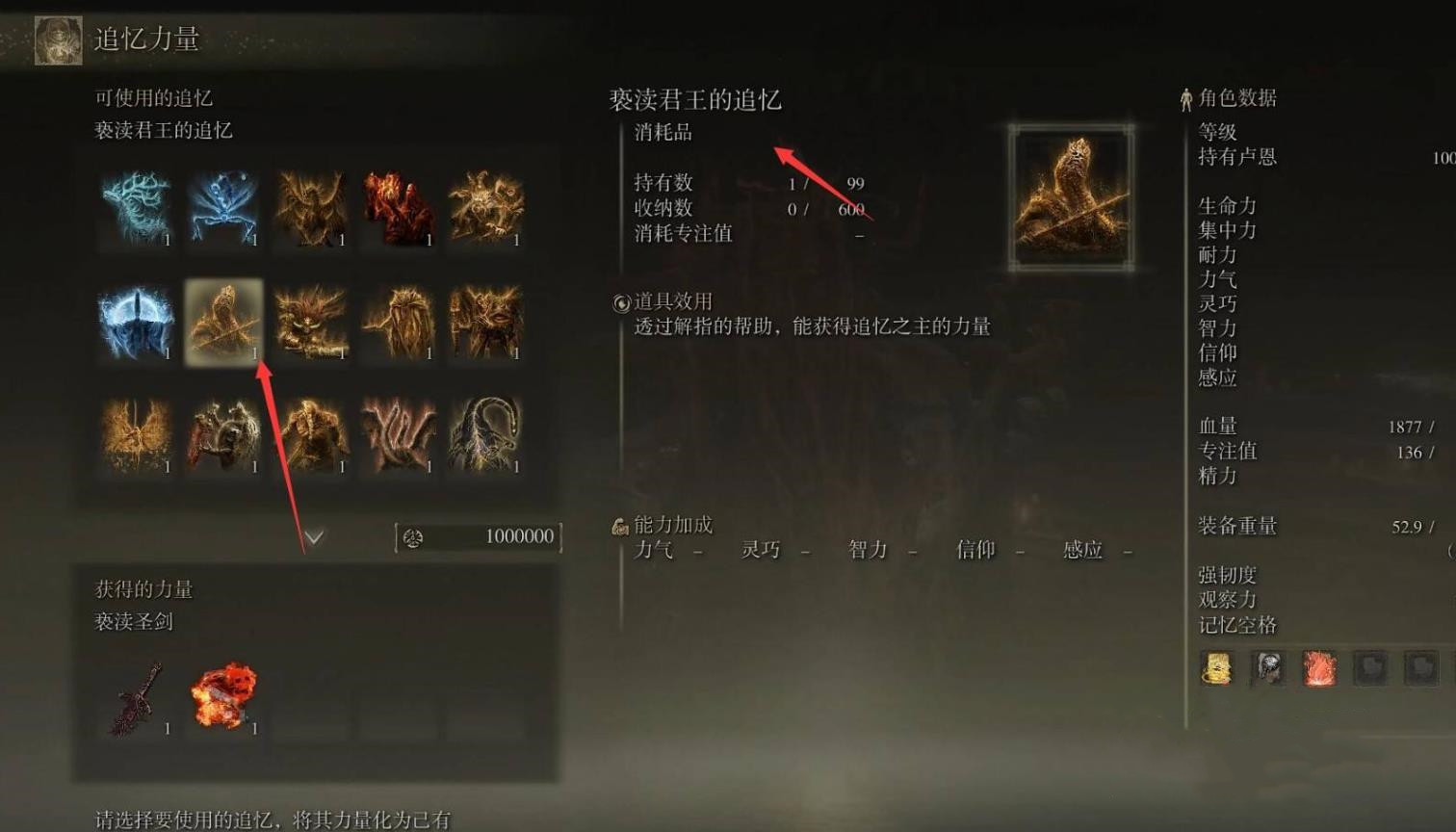 首頁 艾爾登法環 問答 老頭環褻瀆聖劍怎麼獲得? 2022-08-13 1、傳送到大賜福位置。2、到達大賜福中找到解指恩雅npc。3、選擇與其交談,點擊左側的從追憶獲得力量選項。4、選擇頁面中的褻瀆君王的追憶。5、選擇下方的褻讀聖劍,點擊確定兌換即可獲得褻讀聖劍。