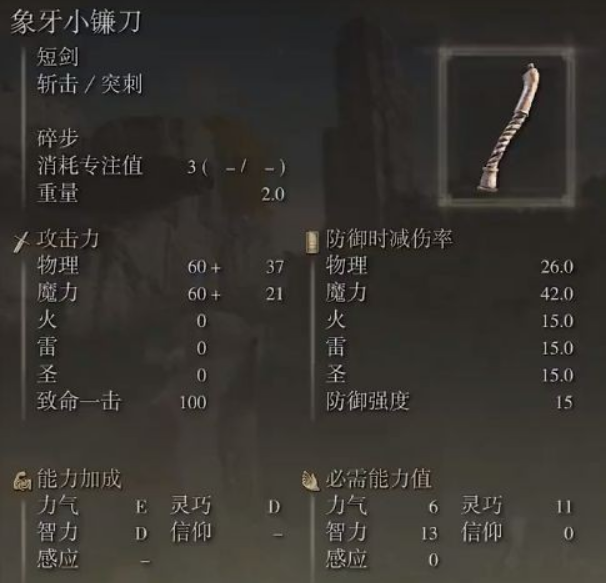 首頁 艾爾登法環 問答 老頭環打女武神用什麼裝備好? 2022-08-14 象牙小鐮刀,一把不錯屬性的小鐮刀,適合法師使用,左手法杖,右上小刀,真的帥。位置在利維尼亞湖的左上角,有一個小偷的封印監牢,裡面有這把神器。