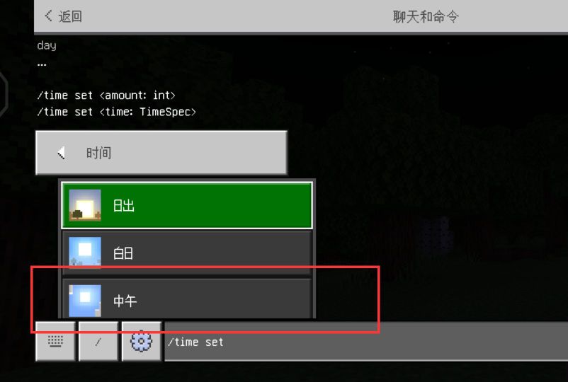 首頁 我的世界 問答 我的世界時間怎麼調到白天? 2022-08-16 我的世界調成白天方法:1.進入遊戲主界面,點擊上面的聊天圖標。2.選擇左側下方的「/」。3.點擊設置世界出生點下邊的時間。4.選擇想選擇的時間。5.這樣就把時間調整為白天了。