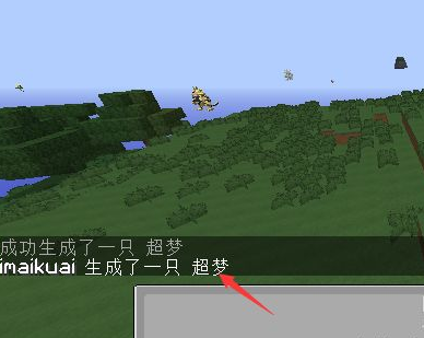 2.我們輸入超夢的召喚指令「/pokespawn Mewtwo」。回車即可召喚出來超夢,召喚出來的是野生的,可以和它戰鬥,進行捕捉。