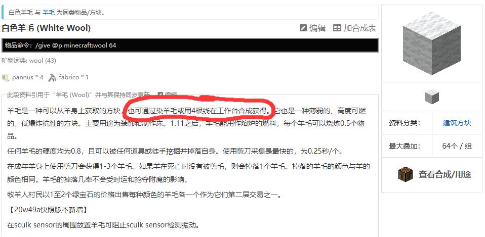 首頁 我的世界 問答 我的世界羊毛怎麼變成線? 2022-08-21 我的世界羊毛在原版里是不能變成線的。1,首先我們搜索並進入羊毛的相關說明。2,然後就會發現只有線變成羊毛的說明,沒有羊毛變成線的說明,所以羊毛是不能變成線的。