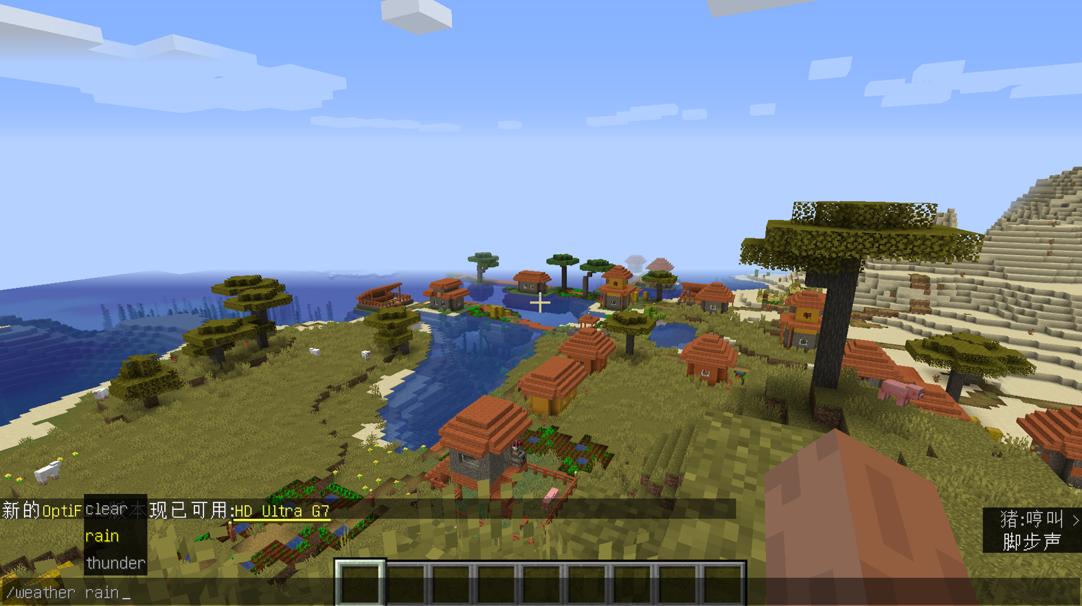 首頁 我的世界 問答 我的世界雨天的指令是什麼? 2022-08-22 1、進入遊戲,玩家需要打開遊戲控制台,然後在控制台輸入指令/weather rain,然後按回車鍵。2、可以看到在遊戲左下角系統提示天氣已經更改為雨天即可。