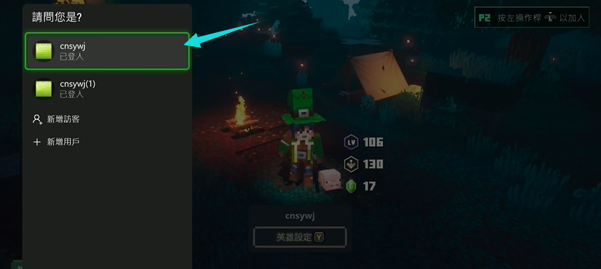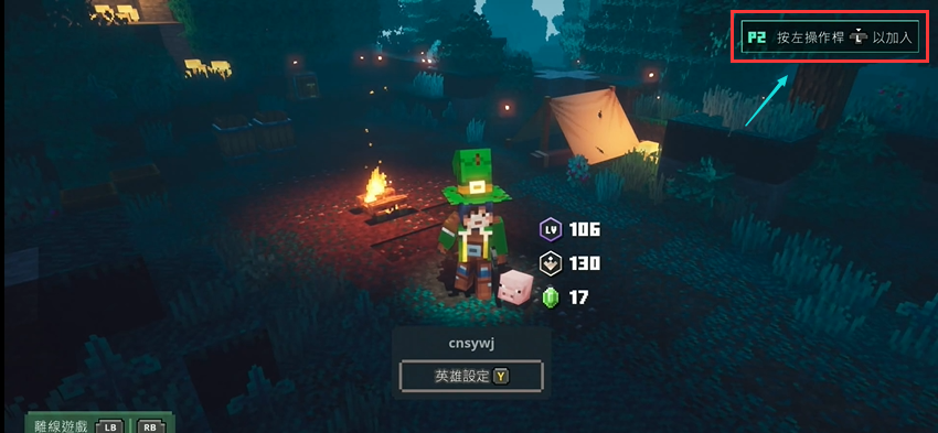 1.我的世界地下城雙人同屏首先要在主機上連接上兩個手柄,第二後玩家根據右上角的提示按【L】鍵加入