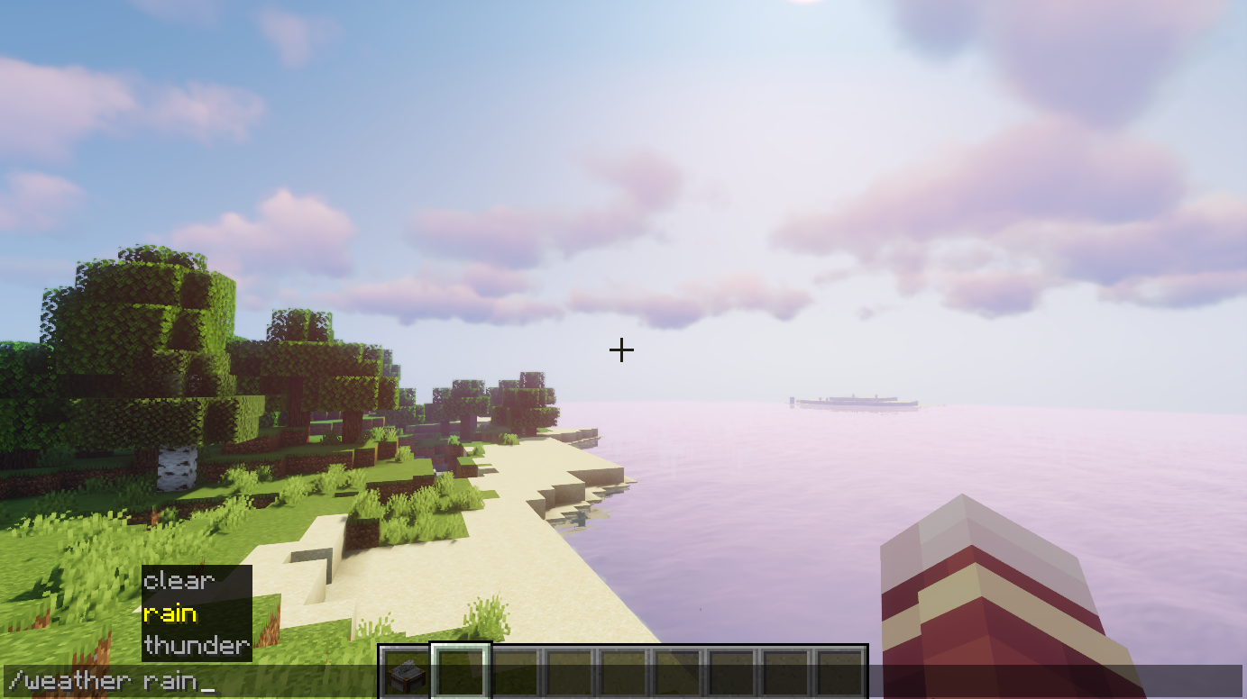 首頁 我的世界 問答 我的世界更換天氣的指令是什麼? 2022-08-22 1、玩家打開遊戲,進入遊戲地圖中後,首先需要打開控制台輸入指令/weather rain,然後按回車鍵。2、可以看到,遊戲提示天氣已設為雨天,可以看到晴天就變為雨天。