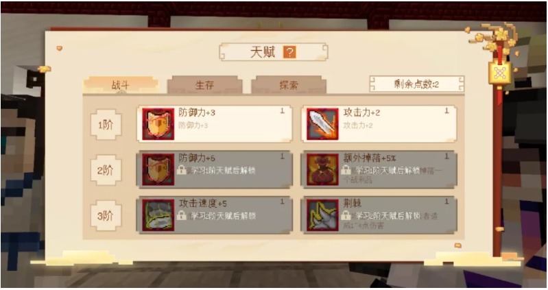在《三打白骨精》玩法中,冒險家們完成相應任務即可獲得天賦點數,並通過消耗點數習得戰鬥、生存、探索三大天賦獲得永久屬性加成!