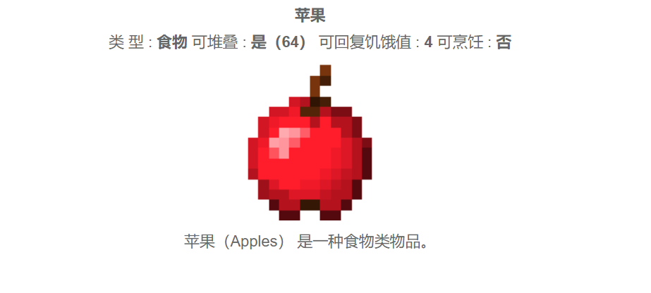 首頁 我的世界 問答 我的世界蘋果有什麼用? 2022-08-25 蘋果(Apple)在我的世界中是一種食物類物品,吃掉蘋果可以提升4點飢餓值,蘋果在我的世界的各種食物中是來源廣泛、容易獲得的一種,不需要烹飪就可以使用,算是非常便捷的一種食物。