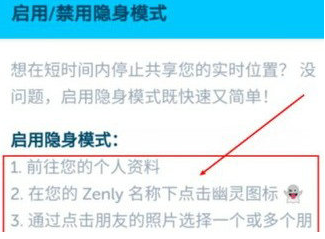 3、點擊隱身模式(點擊聯繫我們,點擊聯繫我們,點擊提問,點擊發現Zenly)如下圖,看到啟用/禁用隱身模式