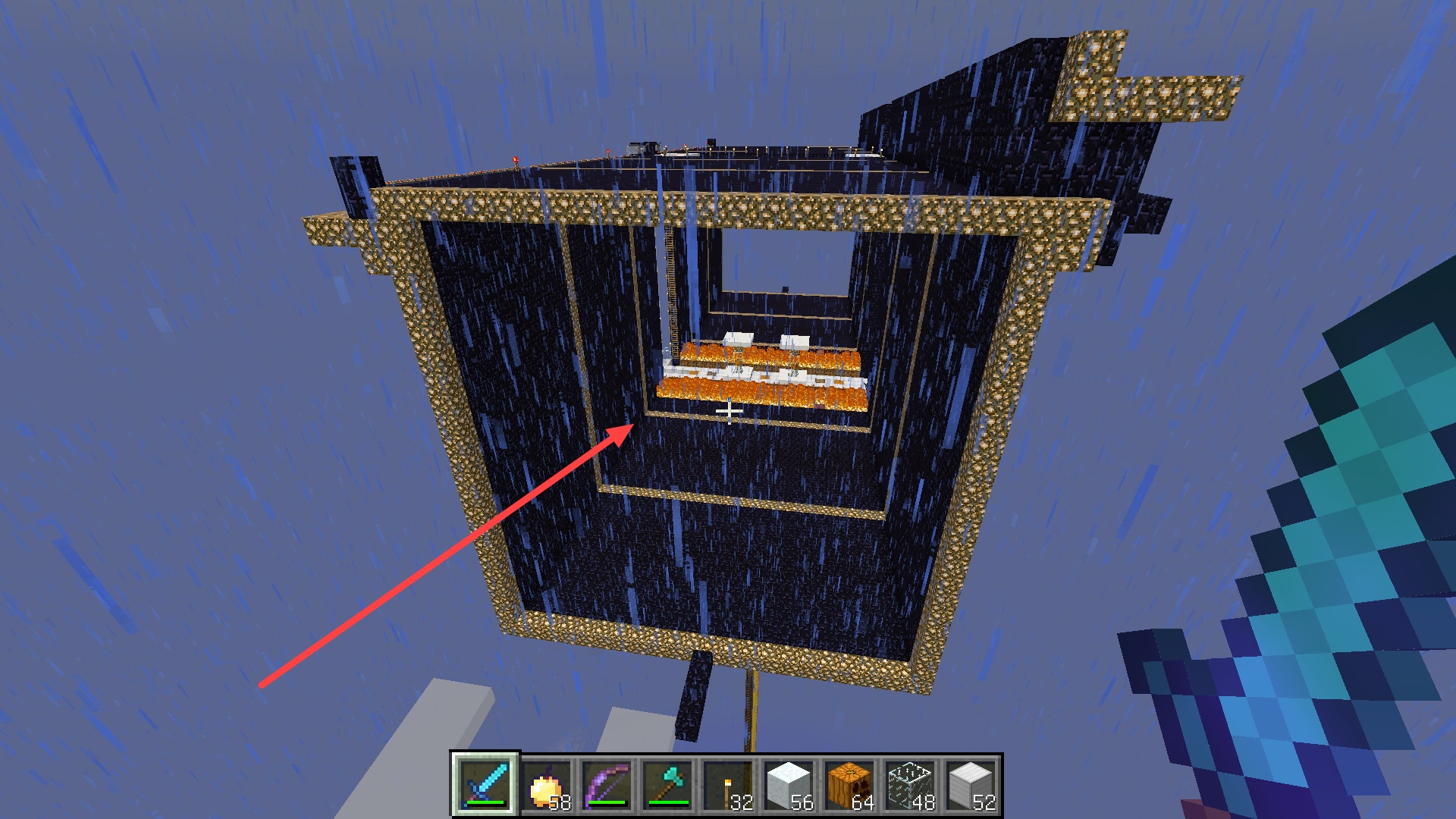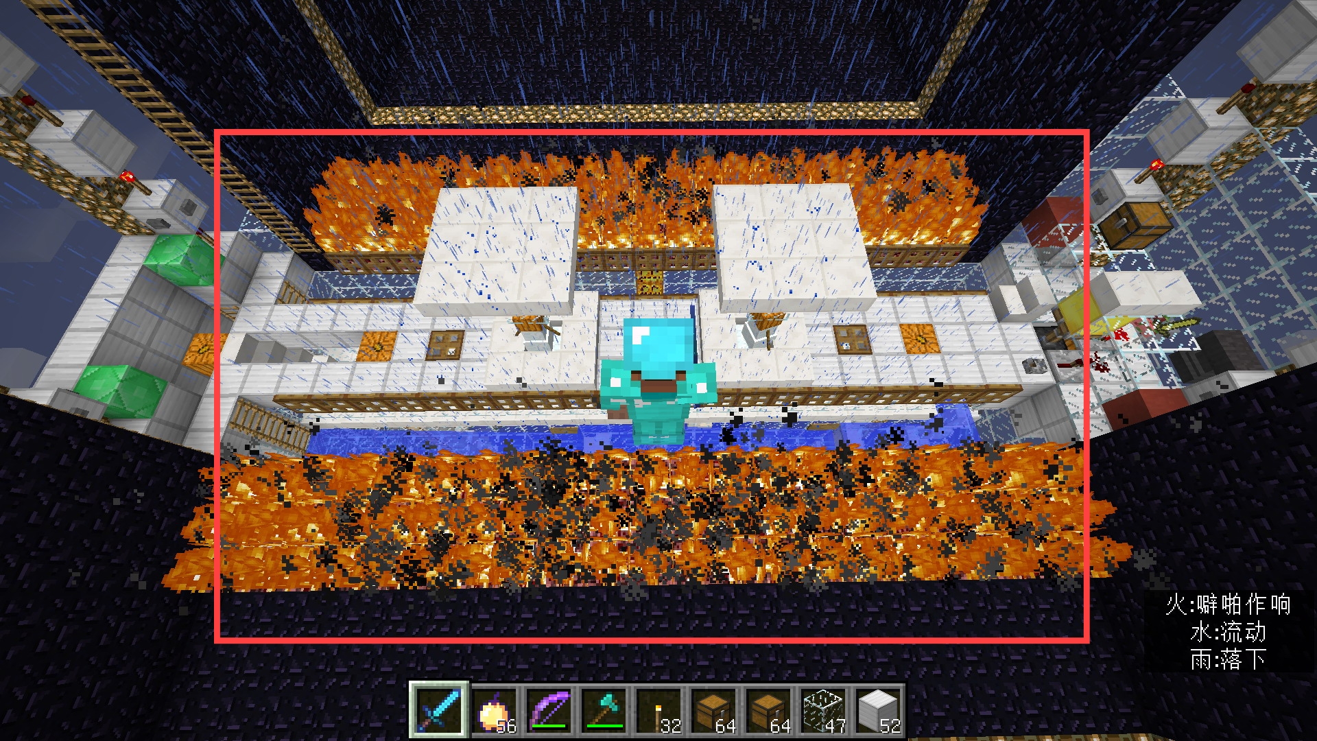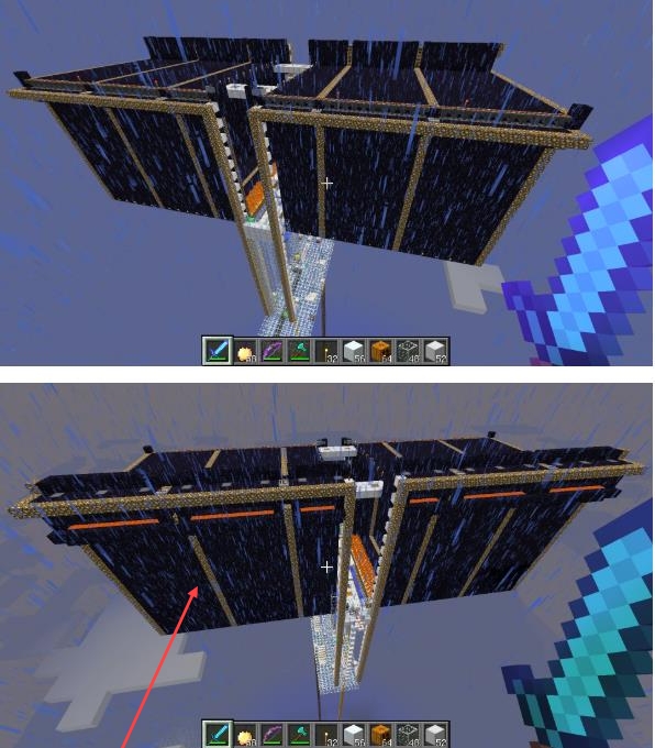 2、下圖傳送門陣的左上角裝有一排火焰彈發射器,右上角裝有一排TNT發射器,用於開關傳送門。