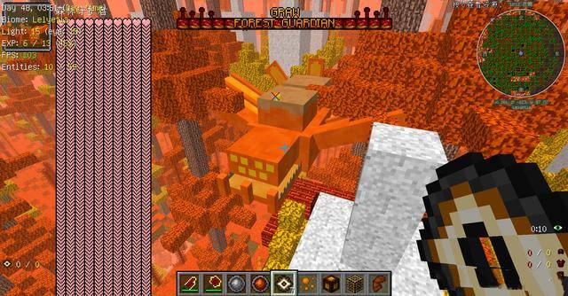 6、森林守護者、通關召喚物守護者之眼到守護者祭壇召喚。通過擊殺赫爾維蒂世界的生物掉落黃色或者橙色孢子,然後尋找到森林守護者之柱,用任意孢子右鍵其頂部的祭壇會生成一個發光的弗萊,擊殺該弗萊會掉落boss召喚物守護者之眼。