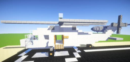 玩家需要用普通方塊搭一個高台,在高台上按照直升機的樣式用黑色羊毛做一個臨時的起落架,放置方塊作為底座,並放置上半磚,搭建飛機的主體。用黏土搭建機體,駕駛室用幾塊玻璃塊作為前窗,鐵質活板門作為舷窗。利用半磚,延伸搭建機尾。填補另一面,你也可以選擇開個雙門。放置兩個半磚和四個末地燭,做螺旋槳。直升飛機就完成了。