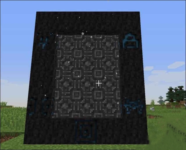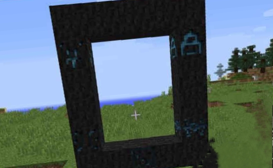 2、搭建一個5*6的長方形門框,如下圖所示。把能量雕符石放在門框下方,處於正中間的位置。