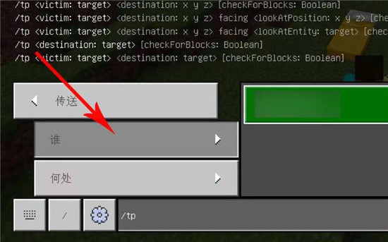 2、然後進入指令界面點擊傳送;