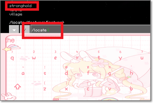 2,在準備好主要的材料之後,點擊打開聊天命令框。在命令框中輸入一條指令【/locate stronghold】,然後發送。