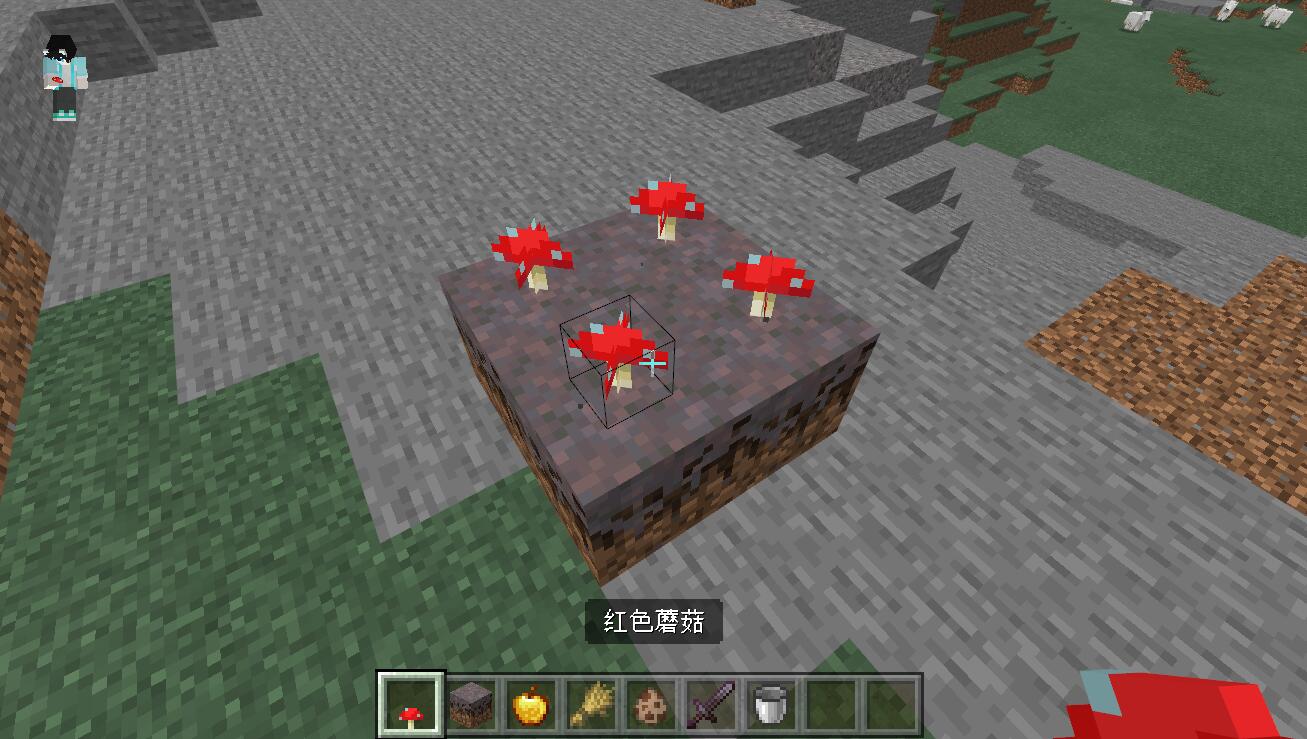 2,然後手上拿著紅蘑菇,右鍵點擊菌絲就可以種植紅蘑菇了。